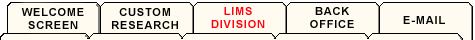 Welcome Screen Custom Research LIMS Division BACKOFFICE E-mail